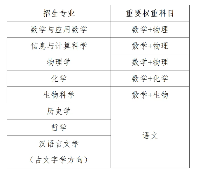 入围成绩=重要权重科目高考成绩*1.5+其他科目高考成绩之和