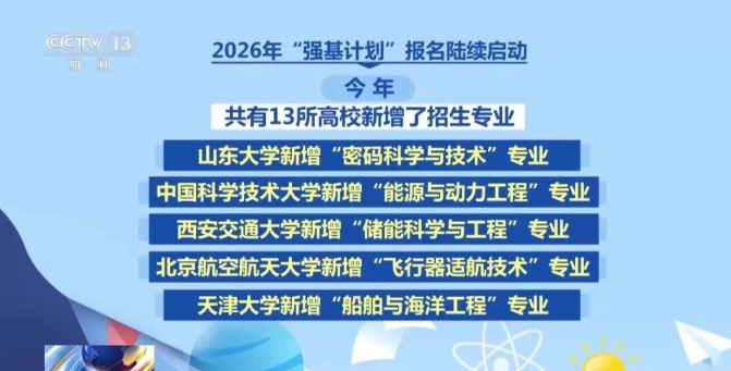 日前,央视《新闻直播间》聚焦2026年强基计划招生新变化,对今年强基计划招生调整与专业布局优化进行报道。
